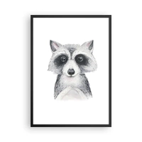 Poszter fehér keretben - Egy aranyos mosómedve fehér alapon ábrázolva - 50x70cm - Egy pillanat meghatottságra - Modern fali dekoráció nappalihoz és hálószobához ARTTOR