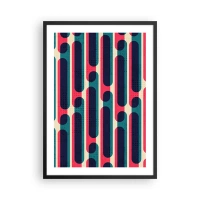 Poszter fehér keretben - Geometrikus minta piros és kék árnyalatokban - 50x70cm - Mélységben és előre - Modern fali dekoráció nappalihoz és hálószobához ARTTOR