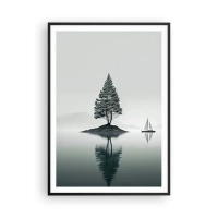 Poszter fehér keretben - Egy magányos fa egy szigeten, tükörképe a vízben - 50x70cm - Egy álom - Modern fali dekoráció nappalihoz és hálószobához ARTTOR