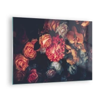 Üveg kép - Sötét virágkompozíció rózsákkal és orchideákkal - 70x50cm - Mint a holland mestereknél - Modern fali dekoráció nappalihoz és hálószobához ARTTOR