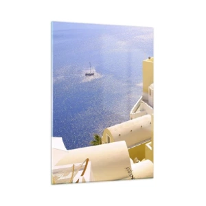Üveg kép - Görög táj fehér és kék színben - 50x70 cm