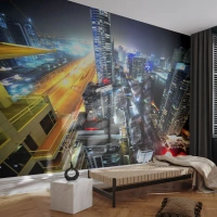 Fotótapéta Standard Eco - Éjszakai város panorámája kivilágított felhőkarcolókkal - 100x70cm - Csoda a sivatagban - Modern fali dekoráció nappalihoz és hálószobához ARTTOR