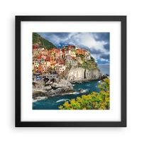 Falióra, Óra - Egy színes város egy sziklán a tengerparton - 30x30cm - Egy csoport a sziklákra simulva - Modern fali dekoráció nappalihoz, konyhához és hálószobához ARTTOR
