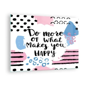 Üveg kép - Inspiráló felirat pasztellszínű háttéren - 70x50cm - Hogyan legyünk boldogok - Modern fali dekoráció nappalihoz és hálószobához ARTTOR