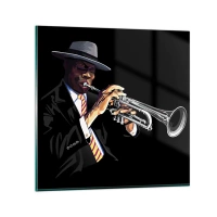 Falióra, Óra - Egy óra számlap fekete alapon dzsessztrombitás motívummal - 30x30cm - Old school varásza - Modern fali dekoráció nappalihoz, konyhához és hálószobához ARTTOR