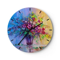 Falióra, Óra - Egy csokor színes virág üvegvázában, pasztell háttérrel - 30x30cm - A rét nyári ajándéka - Modern fali dekoráció nappalihoz, konyhához és hálószobához ARTTOR