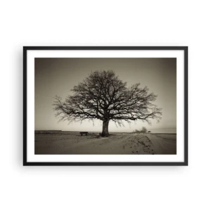 Üveg kép - Egy magányos fa egy monokróm tájban - 70x50cm - Innen az örökkévalóságig - Modern fali dekoráció nappalihoz és hálószobához ARTTOR