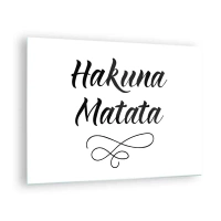 Üveg kép - Hakuna Matata felirat dekoratív díszítéssel fehér alapon - 70x50cm - A legjobb tanács - Modern fali dekoráció nappalihoz és hálószobához ARTTOR