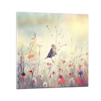 Üveg kép - Madárportré egy réttel a háttérben - 30x30 cm