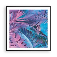 Poszter fehér keretben - Trópusok rózsaszínben és kékben - 60x60 cm