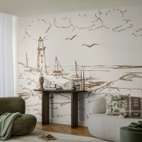 Fotótapéta Standard Eco - Vintage világítótorony és partvonal vázlat - 100x70cm - A nyár emlékeinek vázlata - Modern fali dekoráció nappalihoz és hálószobához ARTTOR