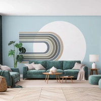 Vászonkép - Minimalista kompozíció körrel és vonalakkal pasztell háttéren. - 70x50cm - Ellenállhatatlan vonzalom - Modern fali dekoráció nappalihoz és hálószobához ARTTOR