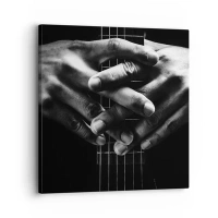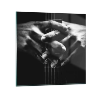 Falióra, Óra - Gitárnyakat tartó kezek közeli képe fekete-fehérben - 30x30cm - Művész imája - Modern fali dekoráció nappalihoz, konyhához és hálószobához ARTTOR