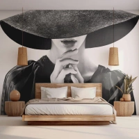 Üveg kép - Stílusos nő feketében, kalappal az arcán - 70x50cm - Rejtett szépség - Modern fali dekoráció nappalihoz és hálószobához ARTTOR