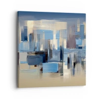 Vászonkép - Geometriai formák kék és bézs árnyalatokban - 70x50cm - Kék építmény - Modern fali dekoráció nappalihoz és hálószobához ARTTOR