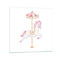 Falióra, Óra - Egy fehér körhinta ló rózsaszín nyereggel, fehér alapon - 30x30cm - Elindult egy patával - Modern fali dekoráció nappalihoz, konyhához és hálószobához ARTTOR
