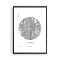 Poszter fehér keretben - Los Angeles minimalista térképe fekete-fehérben. - 50x70cm - Los Angeles anatómiája - Modern fali dekoráció nappalihoz és hálószobához ARTTOR