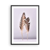 Poszter fehér keretben - Két barna toll világos háttér előtt minimalista stílusban - 50x70cm - A semmi ellen - Modern fali dekoráció nappalihoz és hálószobához ARTTOR