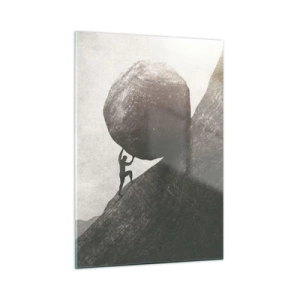 Poszter fehér keretben - Egy szimbolikus alak, aki sziklát visz fel egy dombra - 50x70cm - Hiszek minden remény ellenére - Modern fali dekoráció nappalihoz és hálószobához ARTTOR
