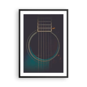 Poszter fehér keretben - Egy akusztikus gitár rezonátorlapjának művészi közeli képe. - 50x70cm - Egy pillanat, mielőtt megszólal - Modern fali dekoráció nappalihoz és hálószobához ARTTOR
