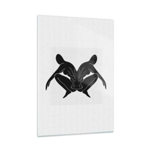 Poszter fehér keretben - Fekete alakok sziluettjei szimmetrikus kompozícióban - 50x70cm - Egy közös lélek - Modern fali dekoráció nappalihoz és hálószobához ARTTOR