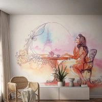 Fotótapéta Standard Eco - Egy romantikus nő egy asztalnál, kilátással a toronyra - 100x70cm - Párizsi sikk - Modern fali dekoráció nappalihoz és hálószobához ARTTOR