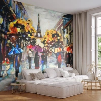 Fotótapéta Standard Eco - Őszi Párizs az esőben, színes esernyőkkel - 100x70cm - Ősszel különösen szép - Modern fali dekoráció nappalihoz és hálószobához ARTTOR