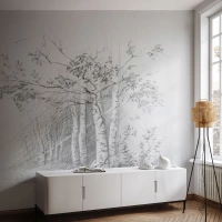 Fotótapéta Standard Eco - Ceruzarajz nyírfákról az erdőben - 100x70cm - A nyírerdő fénye - Modern fali dekoráció nappalihoz és hálószobához ARTTOR