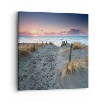 Falióra, Óra - Bejárat a strandra naplementekor, tengerre néző kilátással - 30x30cm - Kiöntöttél egy sugárzó szivárványos fényt... - Modern fali dekoráció nappalihoz, konyhához és hálószobához ARTTOR