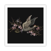 Poszter fekete keretben - Egzotikus hímzett madár - 60x60 cm