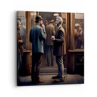 Falióra, Óra - Két férfi beszélget kávézás közben egy kávézó előtt - 30x30cm - A nap egy jó pillanata - Modern fali dekoráció nappalihoz, konyhához és hálószobához ARTTOR