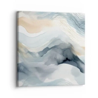 Falióra, Óra - Absztrakt tájkép kék és bézs árnyalatokban - 30x30cm - Hó és köd absztrakció - Modern fali dekoráció nappalihoz, konyhához és hálószobához ARTTOR