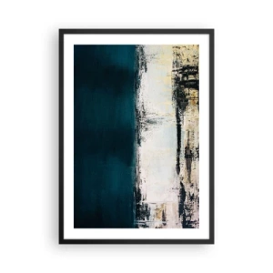 Poszter fehér keretben - Absztrakt kompozíció sötétkék és bézs árnyalatokban - 50x70cm - Vízszintes kompozíció - Modern fali dekoráció nappalihoz és hálószobához ARTTOR