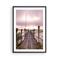 Poszter fehér keretben - Bambuszhíd nyugodt víz felett alkonyatkor - 50x70cm - Nyugalom és csend Ázsiában - Modern fali dekoráció nappalihoz és hálószobához ARTTOR
