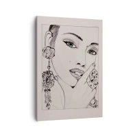 Poszter fehér keretben - Vázlat egy nőről, aki elbűvölő ékszereket visel - 50x70cm - A legszebb ékszer - Modern fali dekoráció nappalihoz és hálószobához ARTTOR