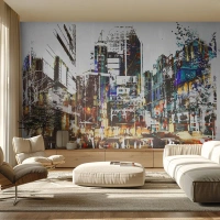 Öntapadós Fotótapéta Deluxe Sticker - Csillogó város - Város, Építészet, Grafika - 150x105 cm