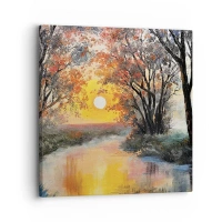 Vászonkép - Naplemente a folyó felett egy őszi tájban - 70x50cm - Őszi hangulat - Modern fali dekoráció nappalihoz és hálószobához ARTTOR