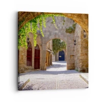 Vászonkép - Kőboltívek és macskaköves utcák középkori stílusban - 70x50cm - A menet hamarosan megjelenik - Modern fali dekoráció nappalihoz és hálószobához ARTTOR