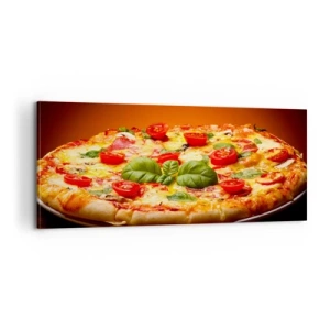 Üveg kép - Pizza paradicsommal, bazsalikommal és olvasztott sajttal - 70x50cm - Mamma mia! - Modern fali dekoráció nappalihoz és hálószobához ARTTOR