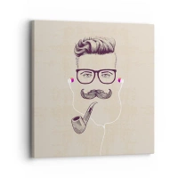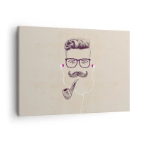 Üveg kép - Egy stilizált, szemüveges, bajuszos és pipás férfi rajza. - 70x50cm - Egy igazi férfi? - Modern fali dekoráció nappalihoz és hálószobához ARTTOR