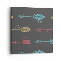 Vászonkép - Stilizált nyílminta pasztell színekben sötét háttéren - 70x50cm - Rendben - Modern fali dekoráció nappalihoz és hálószobához ARTTOR