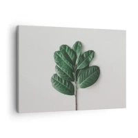 Vászonkép - Egy szál zöld levél világos háttér előtt - 70x50cm - Rajz csak a természetről - Modern fali dekoráció nappalihoz és hálószobához ARTTOR