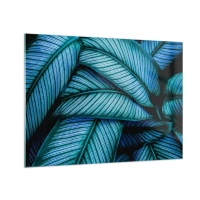 Üveg kép - Intenzív textúrájú türkiz levelek közeli képe. - 70x50cm - Életvonalak - Modern fali dekoráció nappalihoz és hálószobához ARTTOR
