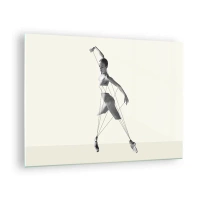 Üveg kép - Fekete-fehér balerina sziluettje geometrikus vonalmotívummal - 70x50cm - A világ színházában - Modern fali dekoráció nappalihoz és hálószobához ARTTOR