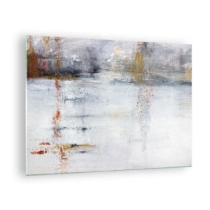 Üveg kép - Egy absztrakt festmény, amely a szürke, fehér és arany színek finom kombinációját mutatja be. - 70x50cm - A légfüggöny mögött - Modern fali dekoráció nappalihoz és hálószobához ARTTOR